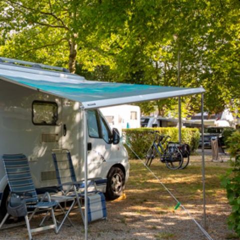 Ce camping est bien placé pour visiter la ville qui est riche en patrimoine, par contre, ne vous fiez pas au plan qui mentionne deux bras de rivière juste à côté, ça c'était avant ... maintenant qu'il n'y a plus de vannes de retenue, il reste un mince filet d'eau d'un aspect pas très engageant....